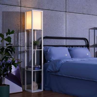 6. LED 现代货架落地灯 – 白色灯罩和 LED 灯泡